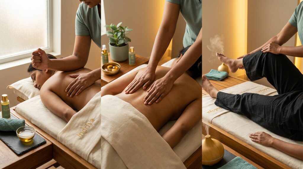 But here’s what nobody tells you: Swedish is the wrong choice if your problem is structural. If you have a knot that’s been there for three weeks, Swedish massage will relax the tissue around it and you’ll feel better in the room — but the adhesion won’t be addressed. You’ll walk out feeling temporarily lighter, and wake up the next morning with the same knot. Swedish is ideal for general stress relief, nervous system fatigue, mild soreness, or when you simply need to feel like a human being again after a brutal sprint. At ₹1,800, it’s also Indriya’s most accessible treatment — and an excellent reset when the pain isn’t chronic and the exhaustion is primarily mental.